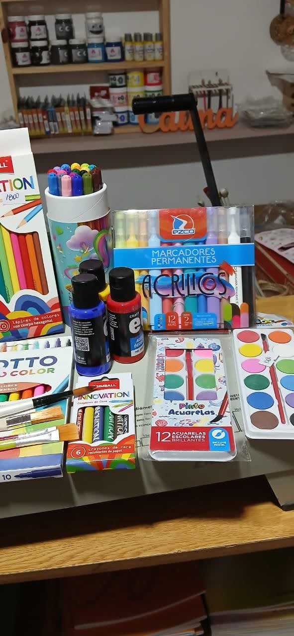 Venta de insumos para dibujo y pintura, junto a clases de arte y reciclado para niños y adultos.