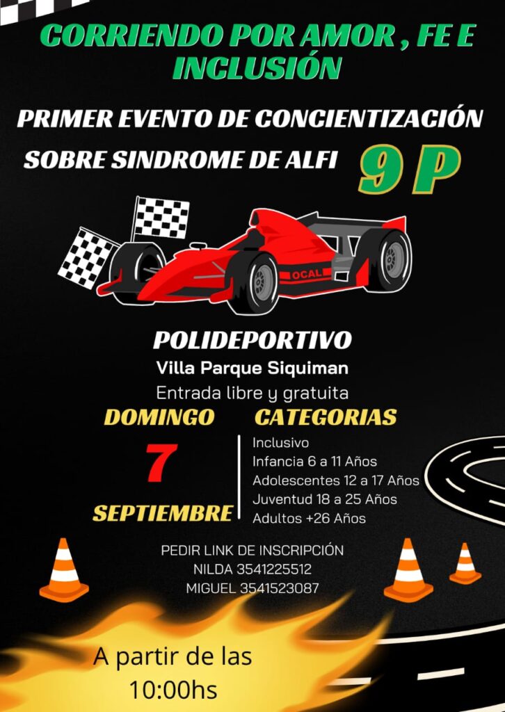 El próximo domingo 7 de septiembre, desde las 10 horas, el Polideportivo de Villa Parque Síquiman se vestirá de solidaridad, alegría y conciencia con la realización del Primer Encuentro de Concientización sobre el Síndrome de Alfi (9p), una condición genética poco frecuente que afecta a personas en todo el mundo.