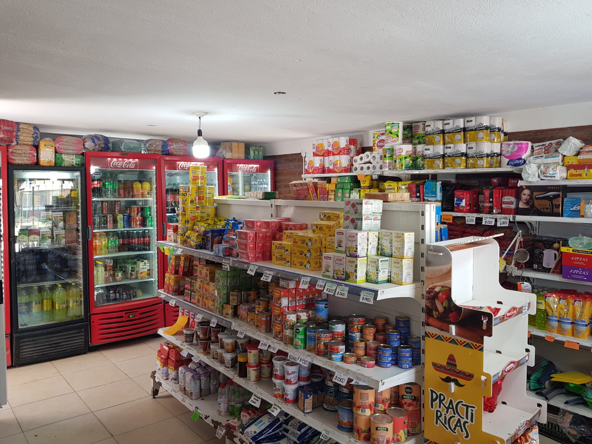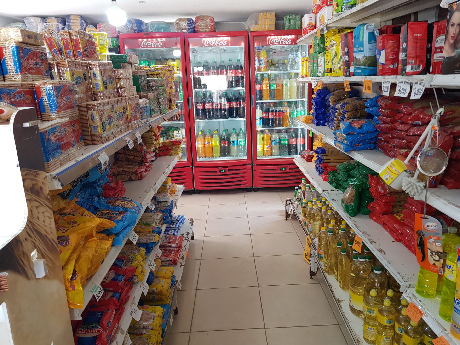 Gran variedad de productos no perecederos, aceites, harinas, enlatados y artículos de primera necesidad.